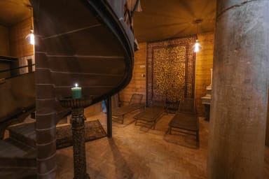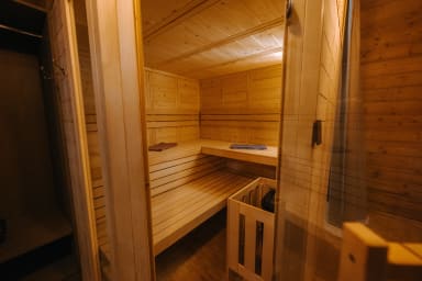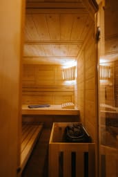 Un espace bien-être, avec sauna, hammam et jacuzzi, vous invite à la détente dans une atmosphère chaleureuse et apaisante.