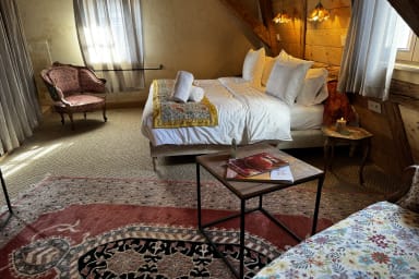 Our rooms are spacious and comfortable, each with its own bathroom (some with bathtubs) and separate toilet. All rooms are equipped with 200x180 cm natural mattresses made of organic wool and cotton, handcrafted by French artisans to ensure the best possible sleep. Some rooms offer the option to separate the mattresses (please request this before booking).