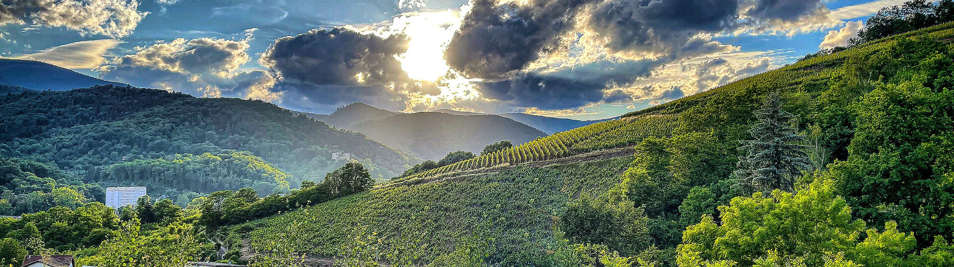 Whether you are traveling with family, as a couple, or with friends, the region of Guebwiller is the ideal destination for an Alsatian getaway. This pretty little town of about 11,900 inhabitants benefits from a privileged location at the foot of the Grand Ballon (the highest point of the Vosges Massif at 1424m) and extends harmoniously along the slopes of the famous Domaine Schlumberger vineyard on one side and the Florival valley or "Valley of Flowers" and protected forest on the other. We also enjoy a strategic location, as we are about forty minutes from Switzerland and Germany and easily accessible via the Basel Mulhouse Freiburg International Airport.